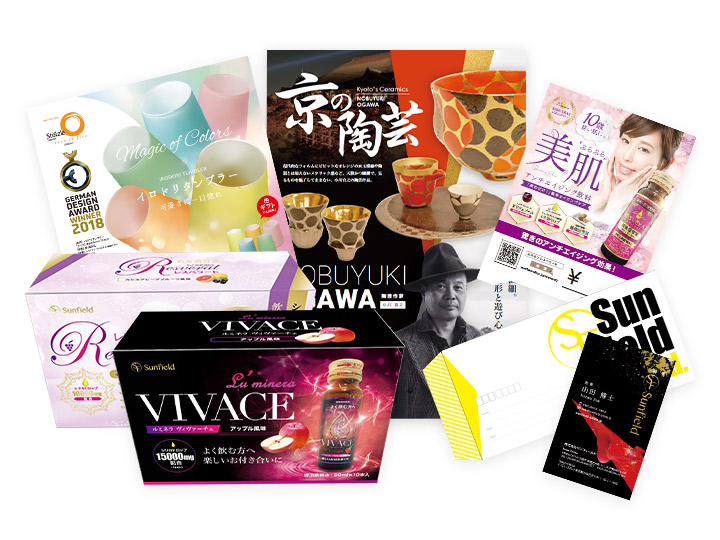 チラシ、DM、パンフレット、ポスター、名刺、ロゴ、POP、看板製作、ブースデザインなどDTPに関する印刷物全般を承っております。