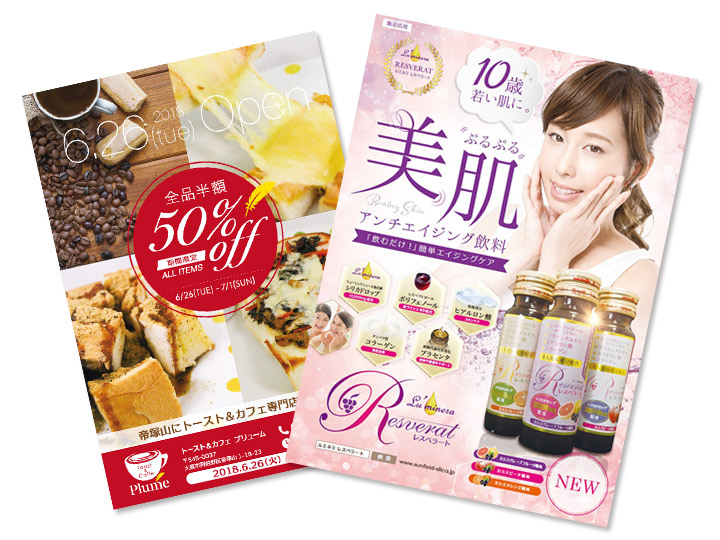 新聞折込チラシ、ポスティングチラシ、DM、フライヤーなど、価格とデザイン品質に自信があります!チラシ制作でお悩みの方はぜひお問合せくださいませ。